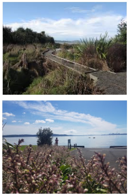 Route: The walk is mostly flat on a loose metal track in one direction and a concrete path on the way back. There are toilets available and the walk is about 3km with lovely views of the Harbour Bridge and cityscape. We walk a meandering track that follows the coastline of the peninsula overlooking wetlands and streams. This area is home to the rare Fernbird -as well as Godwits who visit the shell banks off the peninsula.